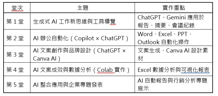 3. 建立AI文案創作與數據應用能力,結合行銷與決策場景。