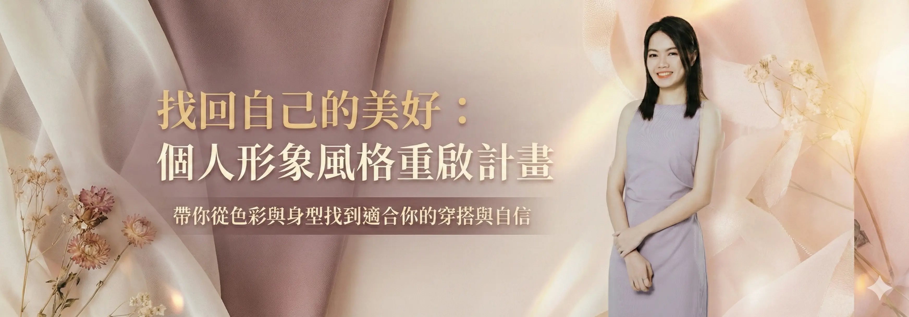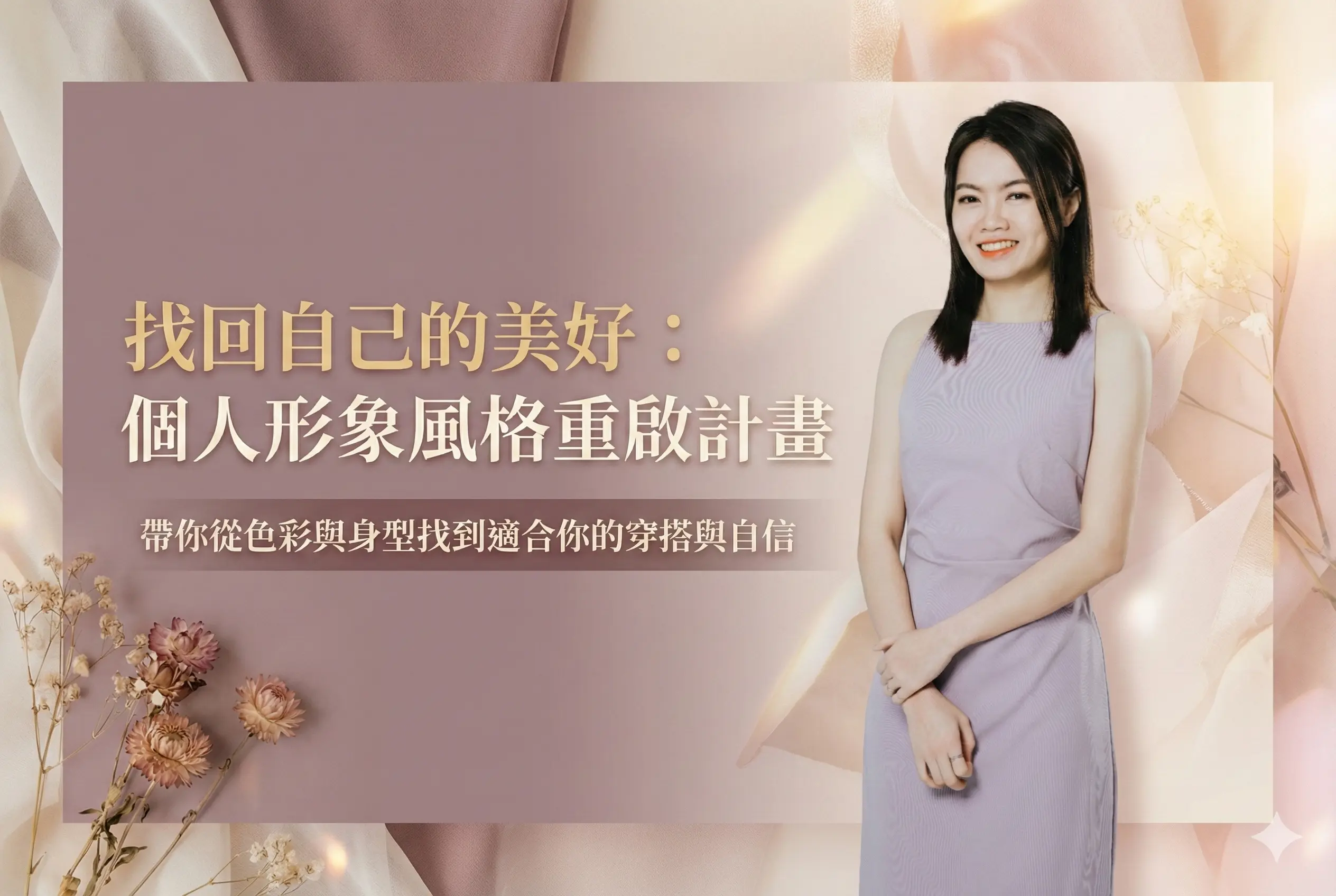 課程目標: 1) 重新認識自己在不同生命階段的風格需求 2) 建立基本色彩觀察力、材質分辨能力、比例概念 3) 找回自信與日常美感,重新整理自己的穿衣邏輯 4) 能在課程後自行判斷最適合自己的穿搭方向