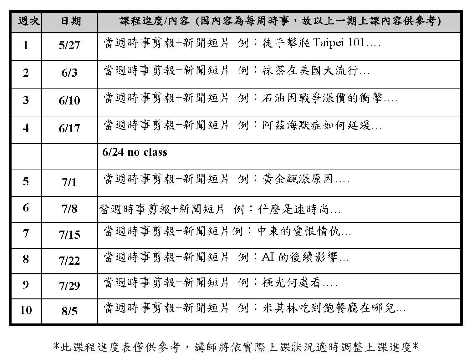 (1) 根據每週時事,主取材於各大英文新聞平台,學英文同時可擴展國際視野。