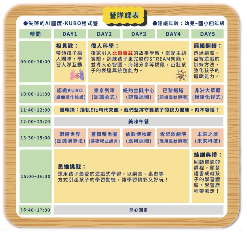 孩子將透過遊戲與任務挑戰,學習指令、邏輯與程式思維,幫助KUBO完成一個個任務,逐步解開AI國度的秘密。