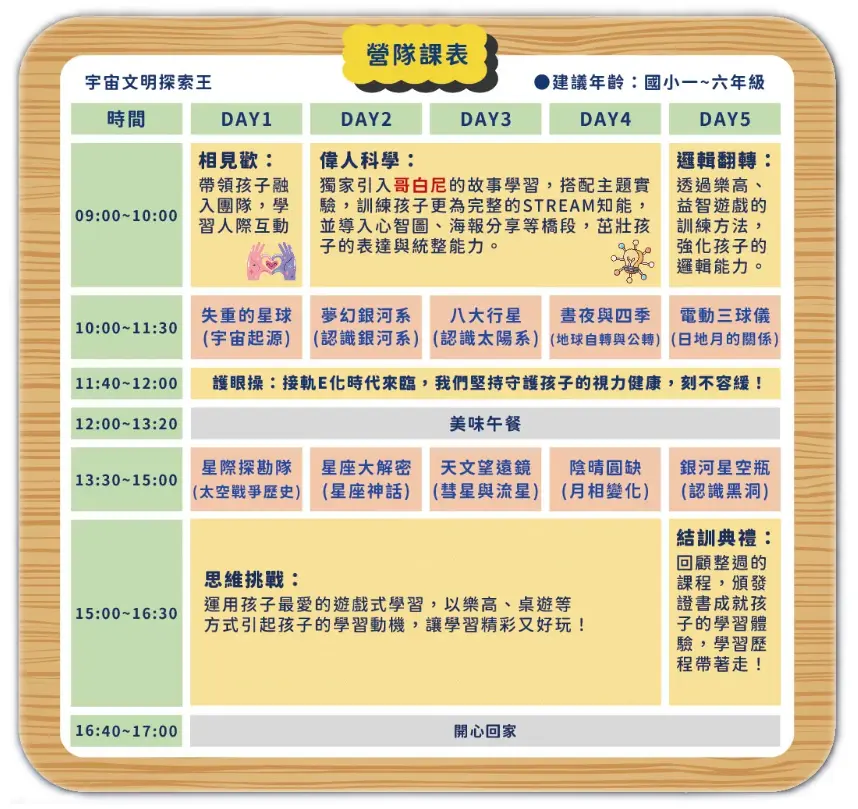 在這個夏天,孩子將化身為小小宇宙探險家,透過有趣的活動與實驗,一步步認識天文與宇宙的奧祕。